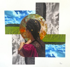 Paper is an extension of my physical and spiritual self. With analog collage as my visual medium, my work seeks to explore the beauties and complexities of being an imaginative Black woman who chose to remain in rural Georgia to grow, thrive and create. As a sixth-generation descendant of farmers, I grew up on and helped cultivate the very land that has fed and sustained my family and extended community for over 100 years. My fascination with the natural world, both above and below, kept me curious and served as a means for me to escape and connect with places both seen and unseen with the naked eye.